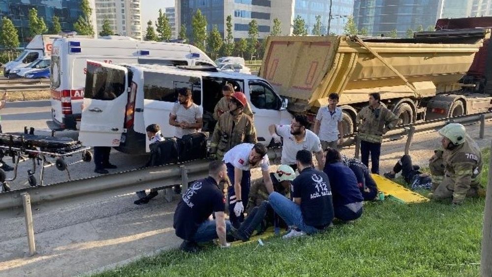 HABER MERKEZİ- Ümraniye’de Şile yolunda, inşaat işçilerini taşıyan minibüs emniyet şeridinde duran hafriyat kamyonuna arkadan çarptı. Kazada 2’si ağır 11 işçi yaralandı. Yaralılar ambulanslarla çevredeki hastanelere sevk edildi.