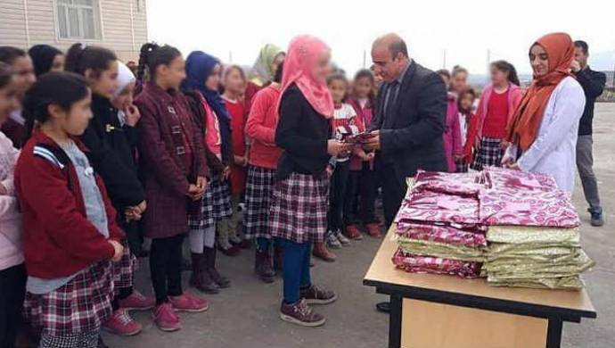 HABER MERKEZİ- Silopi İlçe Milli Eğitim Müdürü Bülent Dayanan, ilçedeki bir okulda okuyan kız öğrencilere türban dağıttı.
