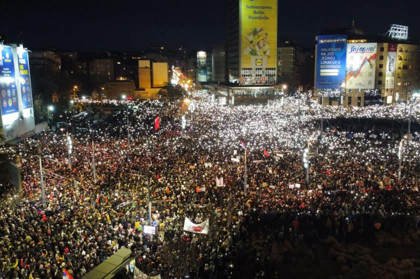 Ülkenin kuzeyindeki Novi Sad’daki tren istasyonunda 1 Kasım’da beton sundurmanın çökmesiyle meydana gelen ve 15 kişinin hayatını kaybettiği kazanın ardından hükümete tepki gösteren öğrenciler, dün akşam başkent Belgrad’daki Slavija Meydanı’nda büyük bir eylem düzenledi.