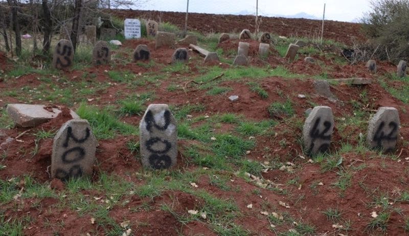 HABER MERKEZİ- Şırnak kent merkezi ile Cizre ve Silopi ilçelerinde 2015-2016 yılları arasında uygulanan sokağa çıkma yasakları sırasında ve yine kırsal kesimlerde farklı tarihlerde yaşanan çatışmalarda ölümsüzleşen HPG ve YPS üyelerinden kimlikleri belirlenemeyenlerin cenazeleri kentteki iki ayrı mezarlığa defnedildiği öğrenildi. Bu mezarlıklardan birinin Şırnak kent merkezine bağlı Konutlar Mahallesi’nde, diğer ise Cizre’nin Yafes Mahallesi’nde olduğu kaydedildi. Her iki mezarlıkta kimlikleri tespit edilememiş toplam 48 cenazeden 36’sının Şırnak’taki mezarlıkta, 12’sinin ise Cizre’deki mezarlıkta olduğu ifade edildi.