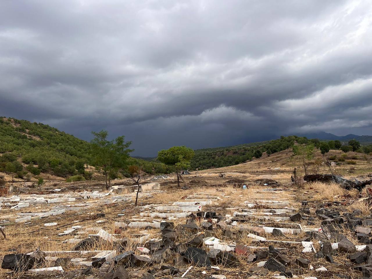 Mezarlıkta yer alan 60’a yakın mezarın taşları askerler tarafından kırılıp parçalandı. Mezarlıkta çekilen görüntülerde de kırılıp etrafa saçılmış mezar taşlarının olduğu görülüyor.