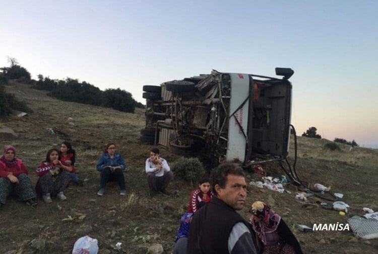 Manisa’da tarım işçilerini taşıyan minibüsün şarampole devrilmesi sonucu 26 kişi yaralandı.
