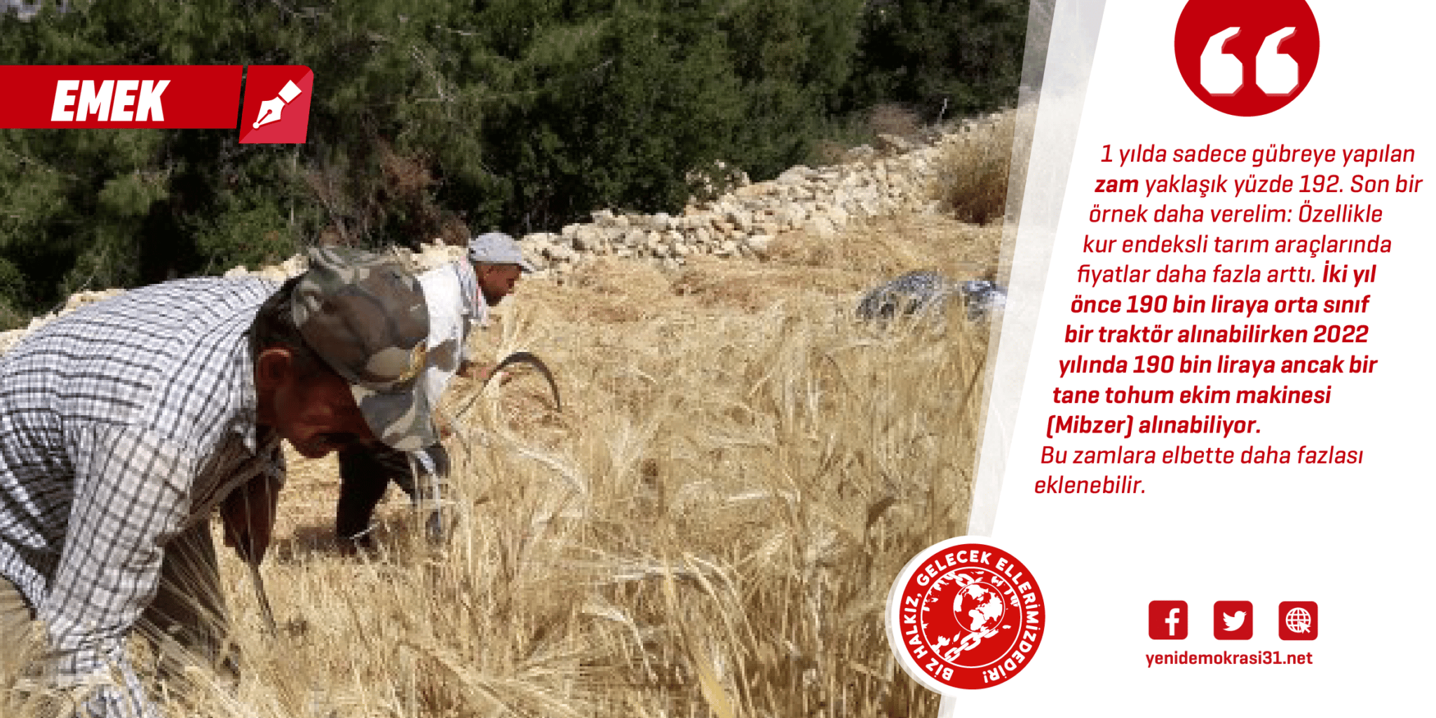 Uzun zamandır emperyalist kapitalist sistemin ciddi bir kriz içerisinde olduğunu belirtiyoruz. Bu durumun görüngüleri ise hem emperyalist merkezlerde hem de yarı sömürge ülkelerde yaşanan halk isyanlarında somutlaştı. Bu halk isyanlarının ortak yönü ise yoksulluk ve enflasyon oldu. Sri Lanka’da akaryakıt fiyatlarındaki artışla başlayan protestolar yoksulluk ve açlık isyanına dönüşmüştü. Devamında ise birçok ülkede benzer nitelikte isyanlara tanıklık ettik. Türkiye’de benzer içerikli halk hareketlerine sahne olmasa da enflasyon ve zam ciddi bir biçimde hissedilmeye devam ediyor. Üretim alanında doğrudan etkilenen sektör de tarım oldu. Akaryakıt zamları, gübre ve tohum zamları, tarım araçlarına yapılan zamlar tarımsal üretimi doğrudan etkiledi. Bir örnek vermek gerekirse: Köylüler 2021 yılında mazotun litresini 7 liraya alırken 2022 yılında 25-30 lira aralığındaki fiyatla aldı. Devam edelim, 2021 yılında 1 ton üre fiyatı 4 bin 600 lira, 1 ton DAP gübre fiyatı ortalama 6 bin 600 lirayken 2022 yılında 1 üre fiyatı 13 bin lira, 1 ton DAP gübre fiyatı 15 bin 760 lira oldu. 1 yılda sadece gübreye yapılan zam yaklaşık yüzde 192. Son bir örnek daha verelim: Özellikle kur endeksli tarım araçlarında fiyatlar daha fazla arttı. İki yıl önce 190 bin liraya orta sınıf bir traktör alınabilirken 2022 yılında 190 bin liraya ancak bir tane tohum ekim makinesi (Mibzer) alınabiliyor.