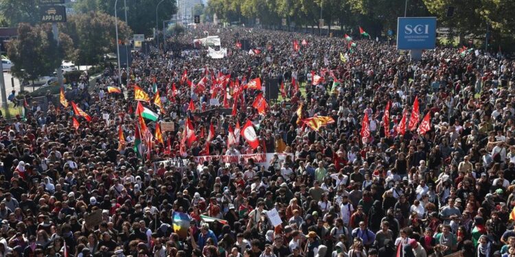 Gazze’deki ablukaya karşı günlerdir Akdeniz’de yol alan ve insani yardım malzemeleri taşıyan Küresel Sumud Filosu’nun Siyonist İsrail tarafından durdurulması ve gönüllülerin alıkonmasına karşı İtalya’da sendikalar genel grev ilan etti. İtalya Genel İş Konfederayonu’nun (CGIL) kararına, metal işçileri sendikası FIOM ile USB sendikası da destek verdi. Genel grev kapsamında 2 milyon kişi meydanlara aktı.