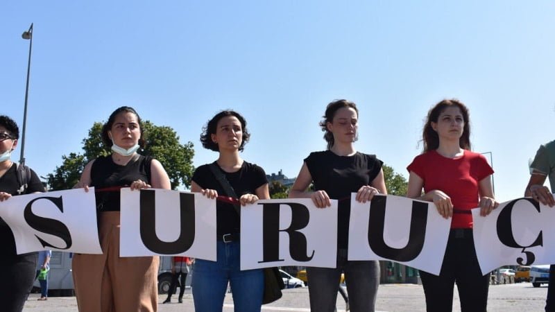 Son olarak grup adına hazırlanan basın metnini okuyan Meltem Çuhadar ise “Bugün Suruç için adalet demek, coğrafyadaki adaletsizliklerin her biri için ‘Adalet’ demektir. Ailesi devlet tarafından katledilen Emine Şenyaşar’ın ‘Katiller Yargılansın’ çağrısıdır, Gülistan Doku’nun kaybedilmesinin üzerindeki örtünün kaldırılması, Yeldana ve Nadira’yı katleden erkeklerden hesap sorulması, Cumartesi Anneleri’nin sesinin duyulmasıdır. Suruç’un kavgası, budur. Adalet kavgasıdır” diye konuştu.