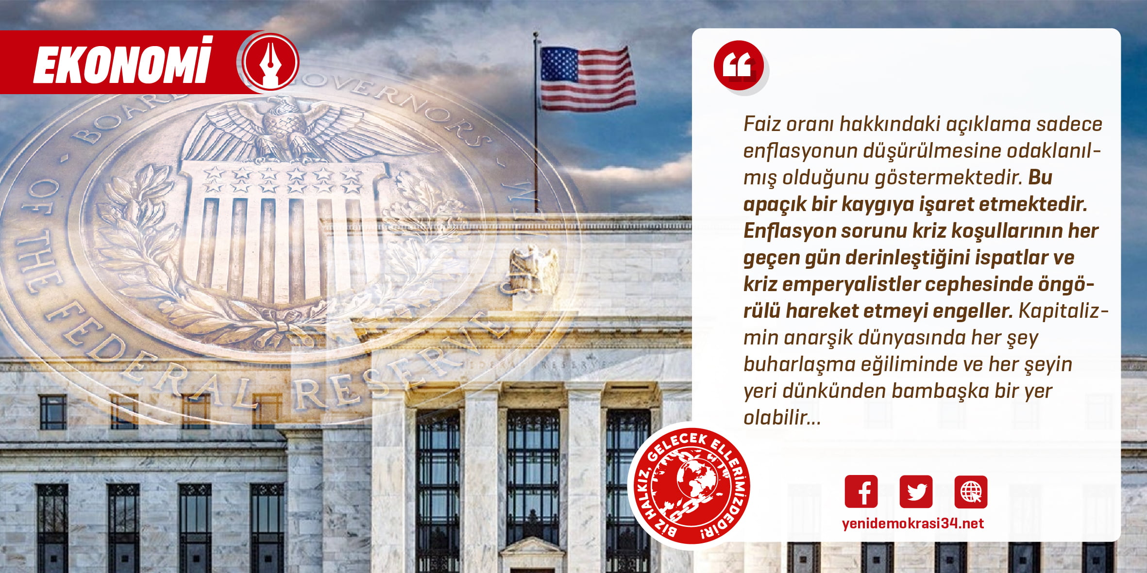 Yeni Demokrasi; işçi sınıfı ve emekçilerin, ezilen ulus ve milliyetlerin, geleceksiz bırakılan gençliğin, devrimci tutsakların ve devrimci basının sesidir.