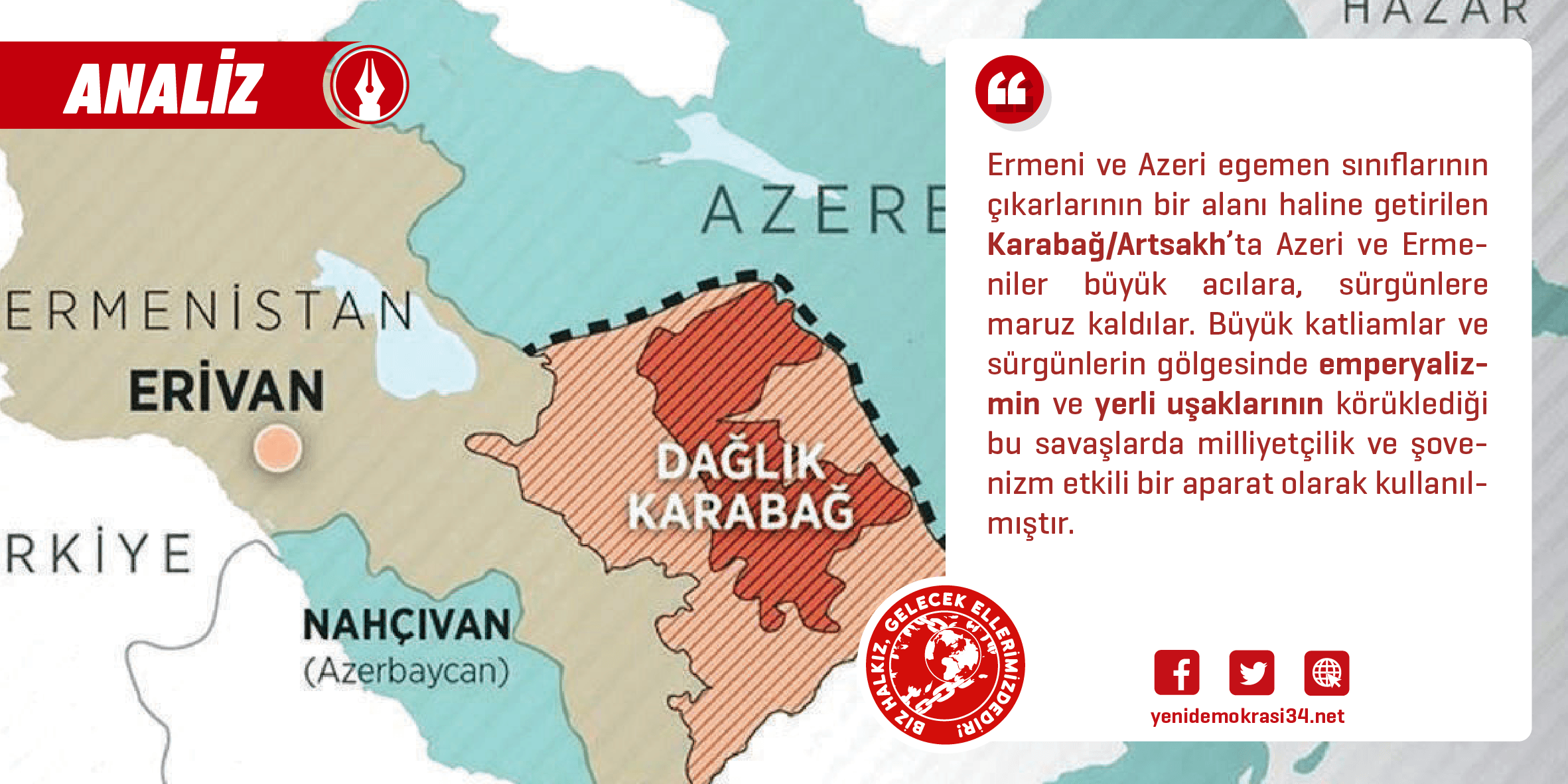 Ermeni ve Azeri egemen sınıflarının çıkarlarının bir alanı haline getirilen Karabağ/Artsakh’ta Azeri ve Ermeniler büyük acılara, sürgünlere maruz kaldılar. Büyük katliamlar ve sürgünlerin gölgesinde emperyalizmin ve yerli uşaklarının körüklediği bu savaşlarda milliyetçilik ve şovenizm etkili bir aparat olarak kullanılmıştır. Türkiye de bu çatışmalardaki rolü gereği içeride ve dışarıda savaş kışkırtıcılığını körüklemiş, şovenizmi öne çıkarmıştır.
