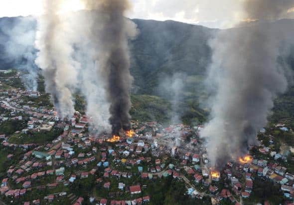 HABER MERKEZİ– Faşist Myanmar ordusu, 30 Ekim’de Chin Eyaleti’nin Thantlang kasabasını bombalayarak 160’tan fazla ev ve üç kilisenin yanmasına neden oldu.
