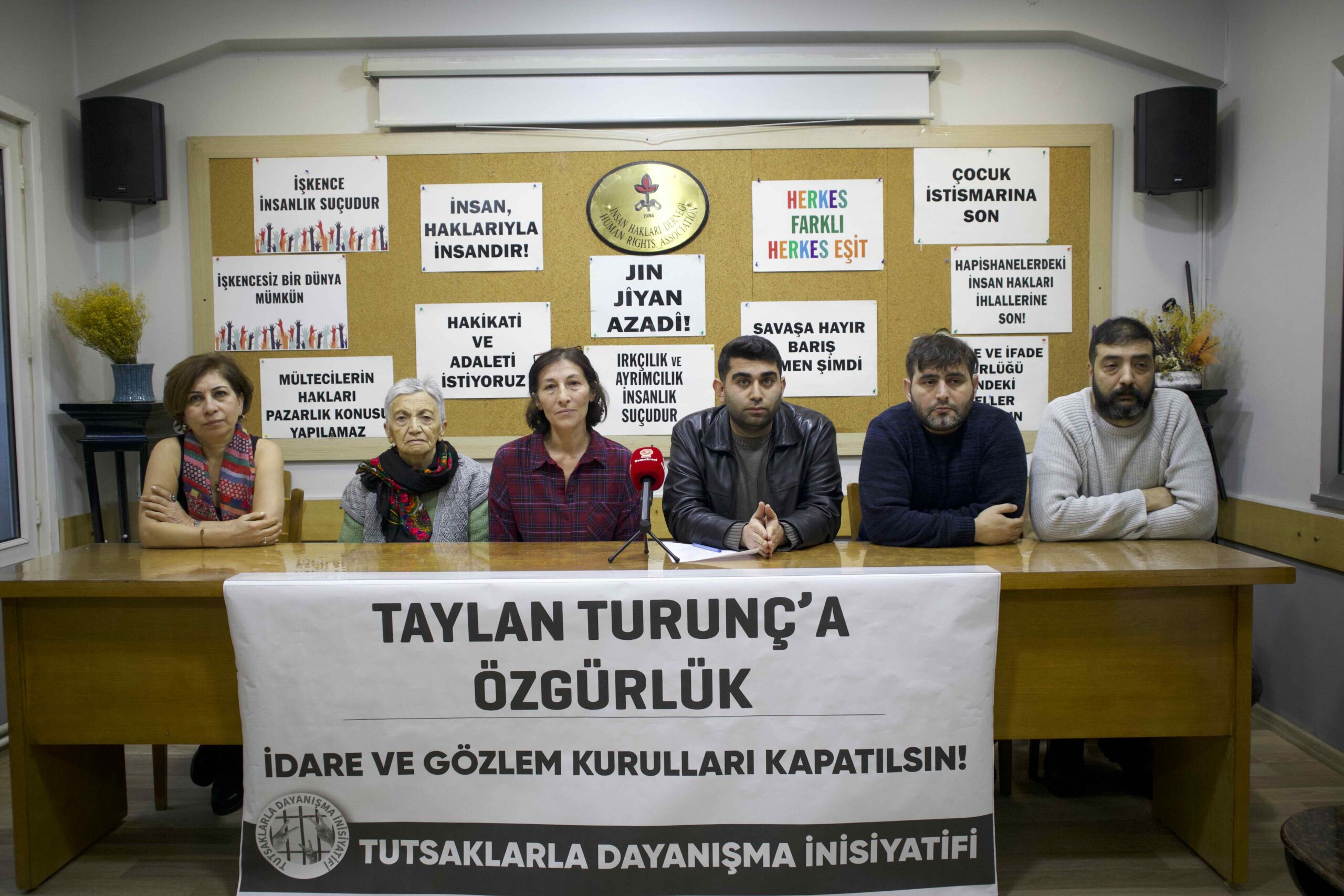 Uçar, Turunç’un İnfaz süresi Aralık 2023 tarihinde tamamlanan Taylan Turunç hâlâ soyut gerekçeler ile hapishanede tutulduğunu belirtti. Uçar, “İnfaz süresi Aralık 2023 tarihinde tamamlanan Taylan Turunç hâlâ hapishanede tutulmaktadır. Tekirdağ 2 Nolu F Tipi Hapishanesinde 9 yıldır tutsak bulunan Taylan Turunç’un tahliyesi Aralık 2023 tarihinde İdare ve Gözlem Kurulu tarafından ‘kurula çıkmadı’, ‘psikoloğa çıkmadı’, ‘dışarı çıktığında örgüt faaliyetlerine devam edebilir’ gerekçeleriyle engellendi. Bu işlem üçer aylık periyotlarla dört kez aynı gerekçelerle tekrarlandı ve Turunç bir yıldır keyfî kararlarla hâlâ hapishanede tutulmaktadır. Son olarak 2024 Aralık ayında yine aynı gerekçelerle cezası altı ay daha uzatılmıştır. Aynı kurul infaz süresini tamamlayan iki tutsağın tahliyesini kurula çıktıkları halde engellemiştir” dedi.