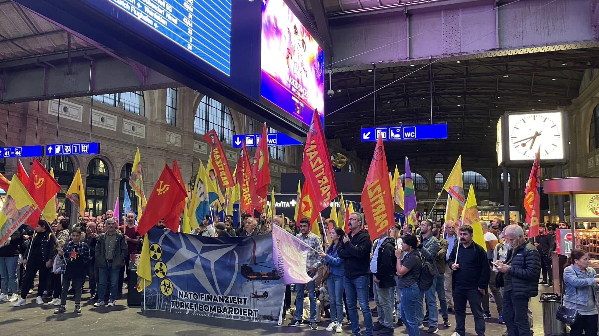 Zürih tren garında yapılan eylem oturma eyleminden sonra sloganlar ve alkışlarla sonlandırıldı.