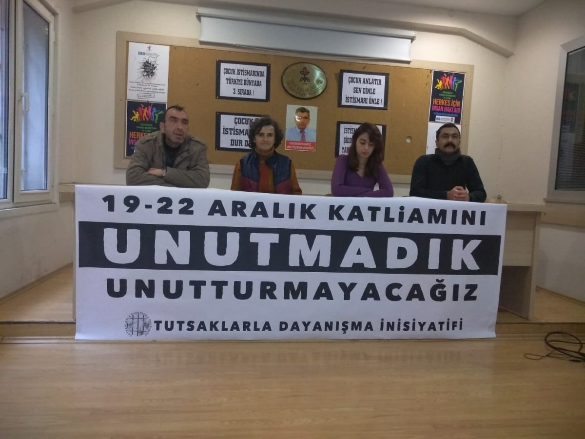 İSTANBUL- Tutsaklarla Dayanışma İnisiyatifi tarafından, İHD İstanbul Şubesi’nde 19-22 Aralık Hapishaneler Katliamı’nın yıldönümünde basın açıklaması gerçekleştirildi.
