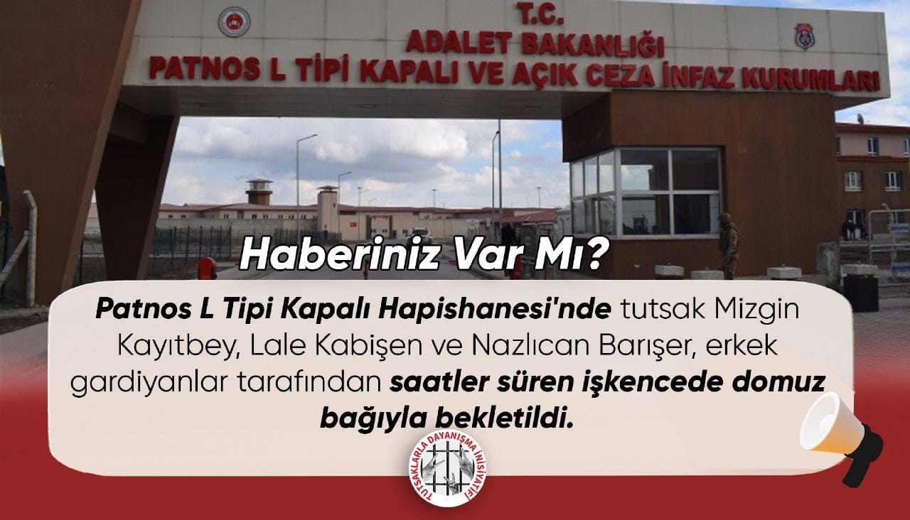 Tutsaklarla Dayanışma İnisiyatifi (TDİ), Patnos L Tipi Kapalı Hapishanesinde işkenceye maruz kalan kadın tutsakların durumuna dikkat çekmek için sanal medya eylemi yapacağını duyurdu.