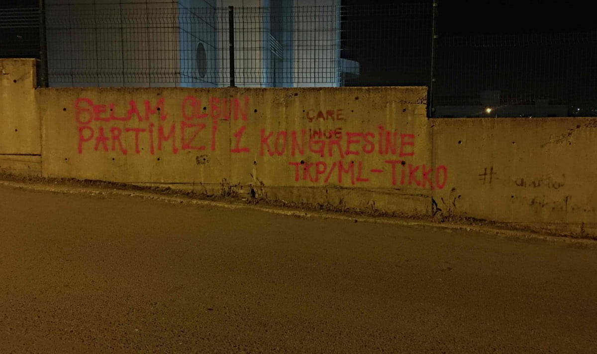 HABER MERKEZİ- TKP/ML Militanları Avcılar ve Haramidere’nin birçok bölgesinde, TKP/ML’nin (Türkiye Komünist Partisi / Marksist Leninist) 1. Kongresini selamlamak için yazılama çalışması gerçekleştirdi. “Şan Olsun Partimizin 1. Kongresine” şiarını sokaklara nakşeden TKP/ML militanları, mücadeleyi yükseltme çağrısında bulunurken “bu çağrının somutlandığı yer partimizin saflarıdır” ifadeleriyle örgütlenmeye çağrı yaptılar.