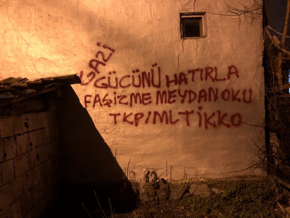 TKP/ML militanları son yıllarda artan çeteleşmeye karşı Gazi Mahallesi’nde yazılama eylemi gerçekleştirdi. Militanlar, eyleme ilişkin yaptıkları açıklamada, geçtiğimiz günlerde çeteler tarafından katledilen Anıl Polat’ın cenazesine saldıran faşist TC’nin karşı devrimci çeteleri koruyup kolladığını belirtilerek başta faşist devlet ve onların tetikçisi çetelere karşı mücadelenin örgütlü olması gerektiği vurgulandı.