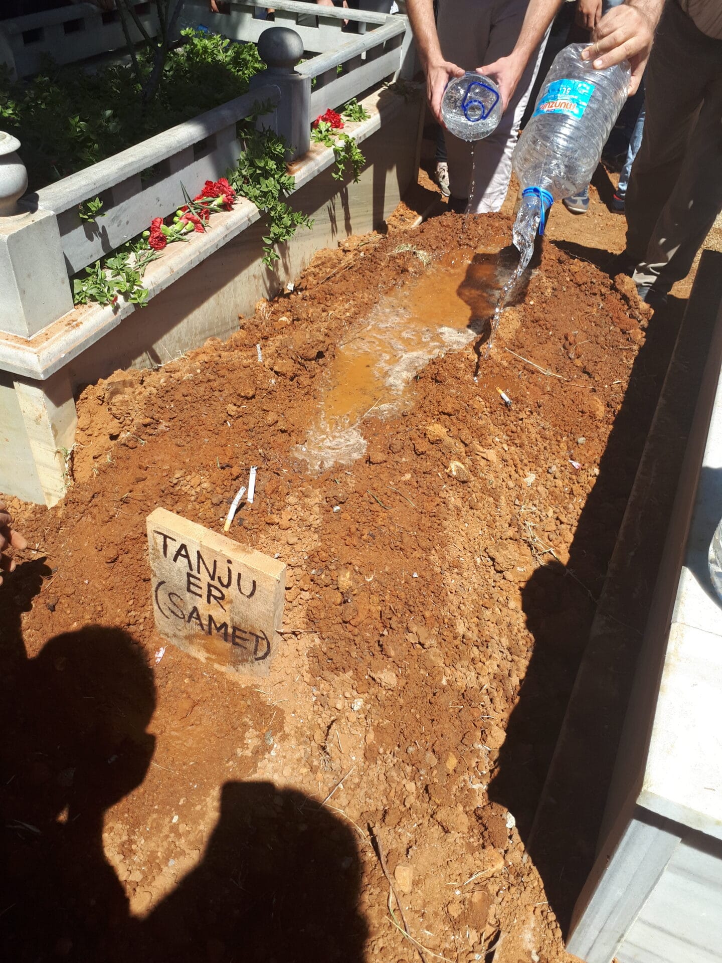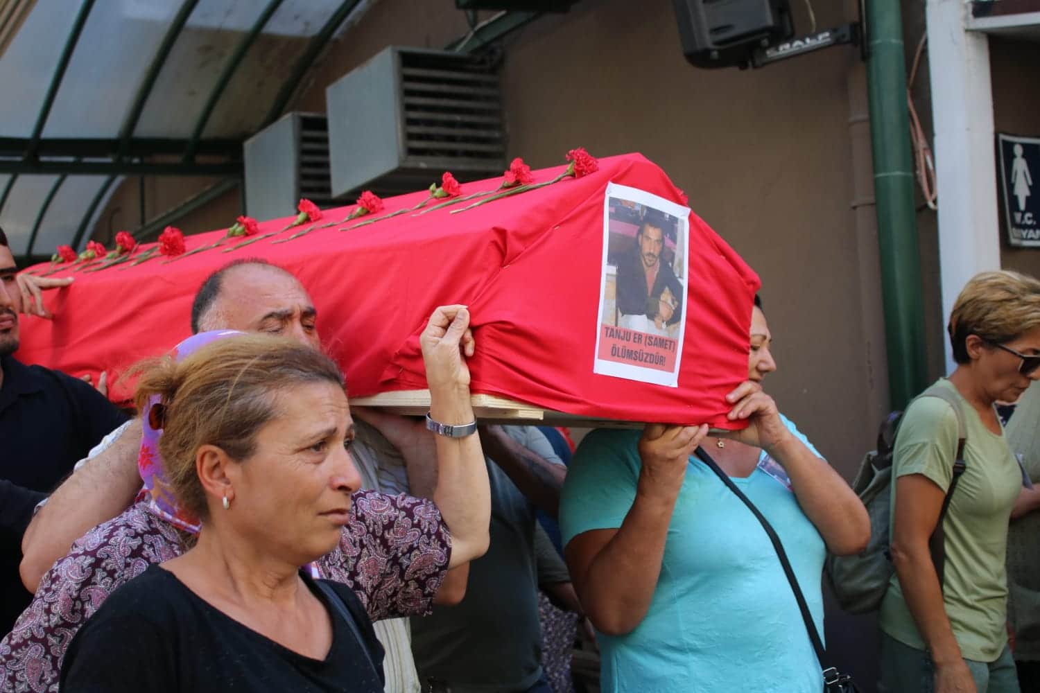 Sabah saatlerinden itibaren cemevi çevresi ve Sarıgazi merkezi polis ablukasına alınarak cenazeye katılım engellenmeye çalışıldı. Cemevine giden sokaklar onlarca polis ve zırhlı araç tarafından kuşatıldı. Polis tarafından kamera çekimi yapılarak cenazeye katılanlar üzerinde psikolojik baskı kurulmaya çalışıldı. Tüm abluka ve baskılara rağmen ailesi ve yoldaşları geri adım atmayarak Tanju Er’i “Samet yoldaş ölümsüzdür”, “Gerillalar ölmez yaşasın halk savaşı”, “Mercan’da düşene dövüşene bin selam” “Umut dağlarda Partizanlarda” sloganlarıyla sahiplendi.