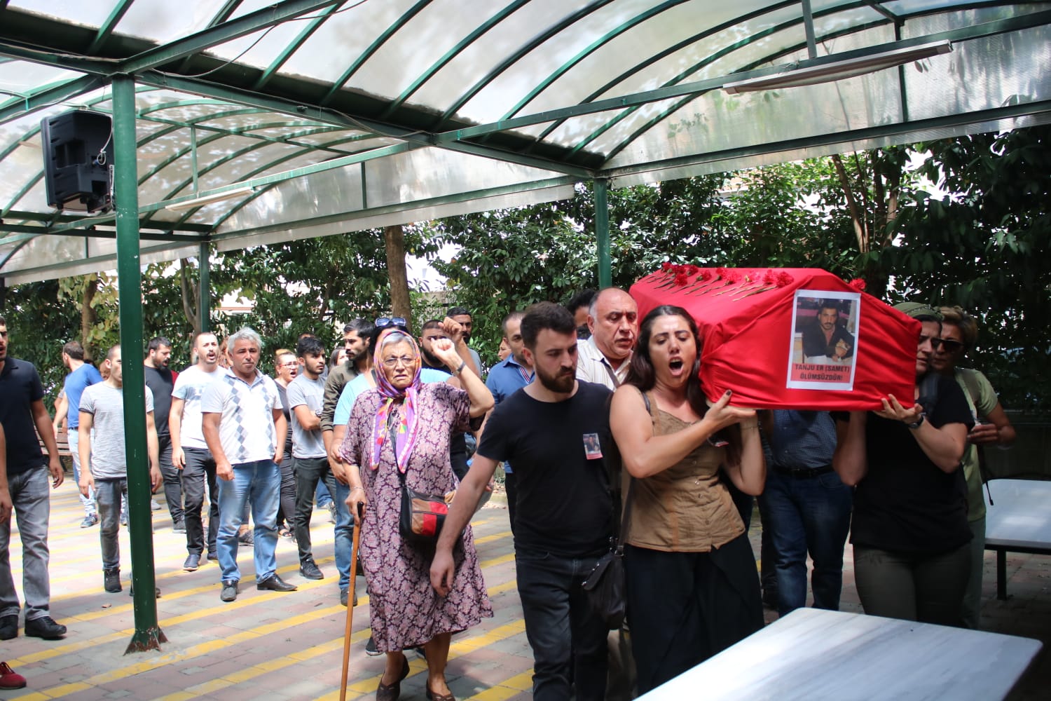 Cenaze aracından ayrılmayan kitleye fiili olarak saldıran polisle arasında arbede yaşandı. Cenaze aracının peşinden koşan kitle “Gerillalar ölmez yaşasın Halk Savaşı” sloganlarını haykırarak mezarlığa ulaştı.