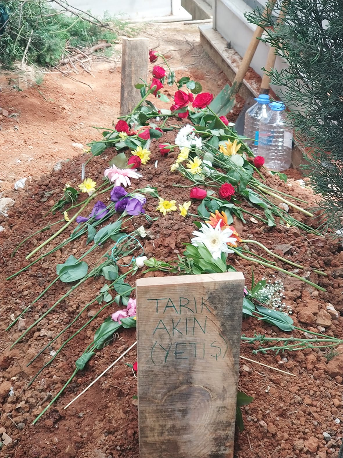 Cenaze defnedilirken, saflarında savaştığı Proletarya Partisi’nin kızıl bayrağı yoldaşları tarafından Yetiş’in bedenine sarmalandı. Mezarı başında konuşan dayısı, saldırıları teşhir ederek, “İnsanlık her zaman sürecek, tek de kalsak sürecek. Biz yiğidimizi toprağa veriyoruz ama şunu unutmayın onurumuzla, gururumuzla, başımız dik veriyoruz. Çünkü bugün artık tecavüzcülerin, çocuk katillerinin kol gezdiği, çocuklarımızın sokağa çıkamadığı günler yaşıyoruz. Onun için burada dik durmanın her zaman bir onur olduğunu unutmayın” dedi ve yeğeniyle gurur duyduğunu ve mücadelesini sahiplendiğini vurguladı. Mezarlık içerisinde de baskı ve tacizlerini sürdüren polise aile ve kitle tepki gösterdi. Cenaze töreninin ardından kitle cemevine doğru yürüyüşe geçti.