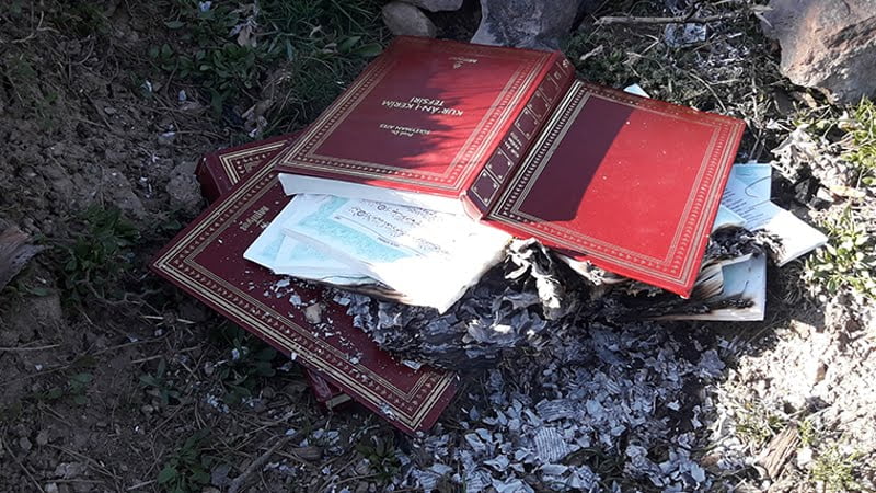 HABER MERKEZİ- Tokat’taki “Topçam Baba Gayip Erenleri Şeyh Salih Ziyaretgâhı”nda yakılmış halde 3 tane Kuran kitabı bulundu. Köy muhtarı Önder Konuk, “İslam âlemi için önem arz eden ramazan ayında ve 23 Nisan günü yapılan bu eylem tamamen provokatif bir eylemdir” dedi.