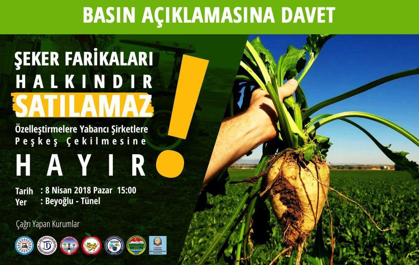 Nişasta Bazlı Şeker(NBŞ) in ülkede kullanılmasının yasaklanmasına da vurgu yapan Bakan, “Halkın işine, aşına el sürmekten vazgeçilmeli” diyerek 8 Nisan günü Tünel’de yapacakları basın açıklamasına duyarlı kamuoyuna ve halka çağrıda bulundu.