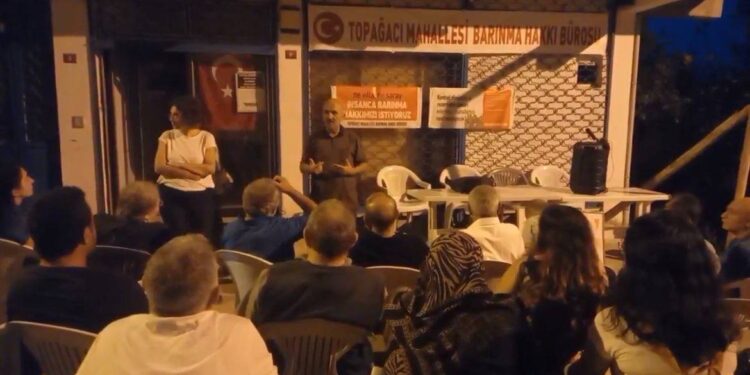 Mücadeleyi bırakmayan Topağacı halkı, buluşmasını Topağacı Barınma Bürosu’nda avukatlar, çevre mühendisleri ve halkın katılımıyla gerçekleştirdi. Toplantının ana gündemi “Rezerv alan nedir?” sorusuydu. Soru-cevap şeklinde yürütülen tartışmalarla mahalle halkına ve destek için gelen çevre mahalleliler katıldı.