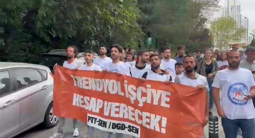Açıklamada Trendyol’un işçileri beş buçuk aylık belirli süreli iş sözleşmeleriyle çalıştırdığını ifade eden işçiler “Trendyol’a baktığımızda yüzde 300, 400 büyüme oranları açıklayan, her gün milyonlarına milyonlar katan bir şirket ama işçilere biçtikleri hayat bu!” dedi. Emre Özdek’in sendika temsilcisi olduğu için 25/2’den işten çıkartıldığını hatırlatan işçiler Çalışma Bakanlığı’na “Sendiika temsilcisini işten atmak 6 aydan 2 yıla hapis cezası değil mi?” sorusunu sordu.