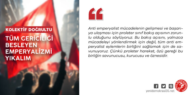 Anti emperyalist mücadelenin gelişmesi ve başarıya ulaşması için proleter sınıf bakış açısının zorunlu olduğunu söylüyoruz. Bu bakış açısını, yalnızca mücadeleyi yönlendirmek için değil, tüm anti emperyalist eylemlerin birliğini sağlamak için de savunuyoruz. Çünkü proleter hareket, özü gereği bu birliğin savunucusu, kurucusu ve öznesidir.