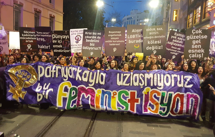 Krizle başa çıkmaya mecbur edildiğimiz, yargı dâhil tüm kurumların içinin boşaltıldığı, demokrasinin varlığından dâhi söz etmenin mümkün olmadığı, sessizleştirilmiş bir ülkede kadınlar hayatlarına sahip çıkmasın istiyorlar. Haklarımızın gasp edilmeye çalışıldığını, eşitlik talebimizin susturulmaya çalışıldığını, bize itaatin öğütlendiğini görüyoruz. Her gün çeşitli biçimlerde şiddete uğrarken bize, 8 Mart Dünya Kadınlar Günü’nde evde oturun deniyor!