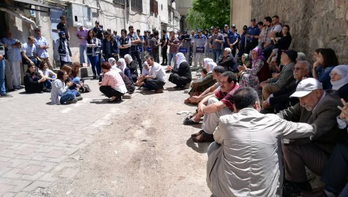 Kavşaktaki engelleme sürerken, Tutuklu Aileleriyle Yardımlaşma Derneği (TUAY-DER) binasının bulunduğu sokakta toplanarak parka gitmek isteyen bir grup tutuklu yakını da polislerce çembere alınarak engellendi.