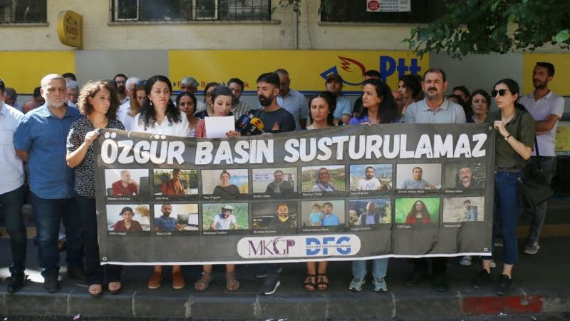 Diyarbakır’da 8 Haziran tarihinde Kürt gazetecilere yönelik operasyon gerçekleştirildiğini hatırlatan Müftüoğlu, 20’si gazeteci 22 kişinin 8 gün gözaltında tutulduğunu, JİNNEWS, Pel, Piya ve Ari Prodüksiyon şirketlerine baskın düzenlenerek, fotoğraf makineleri, kamera, bilgisayar harddisklerinin de aralarında olduğu mesleki ekipmanlara el konulduğunu söyledi.