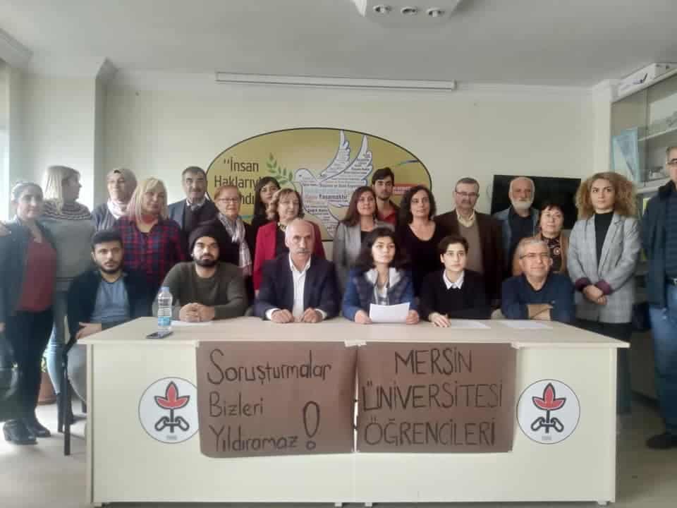 “Geçtiğimiz aylarda üniversiteliler anayasal hakları olan düşünce ve ifade özgürlüğünü kullandıkları için mersin üniversitesi yönetim kurulu ve Emniyet’in Terörle Mücadele Birimi tarafından soruşturmalara tabi tutuldular. Açılan soruşturmalar ise şu şekilde; 10 Ekim’de katledilen insanları ve Mersin üniversitesi öğrencisi olan sıra arkadaşlarımızı anmak için üniversitelilere hitaben yapılan konuşmadan Öğrenci Kolektiflerinden bir üniversiteliye soruşturma açıldı” ifadelerine yer verilen açıklamada, öğrencilere soruşturma açıldığı ve KYK yurtlarından atıldığı belirtildi.