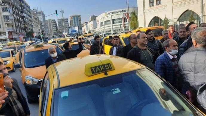 Urfa Taksiciler Derneği’ne bağlı yaklaşık 200 taksici, taksimetreye zam yapılması talebiyle eylem yaptı.Kent merkezinde ticari araçlarıyla konvoy şeklinde turlayan taksiler, merkez Haliliye ilçesi Bamyasuyu Mahallesi Adalet Caddesi’nde bulunan Urfa Büyükşehir Belediyesi önünde bir araya geldi. Zamların yaşamlarının her alanına yansıdığını ifade eden taksiciler, belediye ile yapmak istedikleri görüşme taleplerinin kabul edilmemesi üzerine eylem yaptıklarını söyledi.