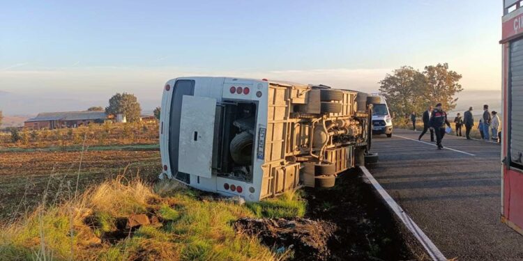 Uşak’ta tarım işçilerini taşıyan midibüs devrildi: 23 işçi yaralandı