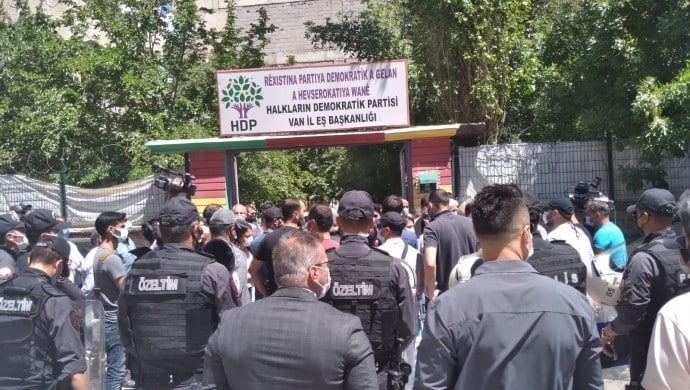 Kürt Dil ve Kültür Ağı’nın, Kürtçe’nin resmi ve eğitim dili olması talebiyle Van’da düzenlemek istediği miting polisler tarafından engelleniyor. Musa Anter Parkı’nda düzenlenecek olan mitinge katılmak isteyenler, Ehmedê Xanî Parkı, Sanat Sokağı ve HDP İl Örgütü binası önünde toplandı. 3 noktadan miting alanına yürümek isteyenler polisler tarafından ablukaya alındı. Polisler, “izin yok” gerekçesiyle yürüyüşe izin vermiyor.
