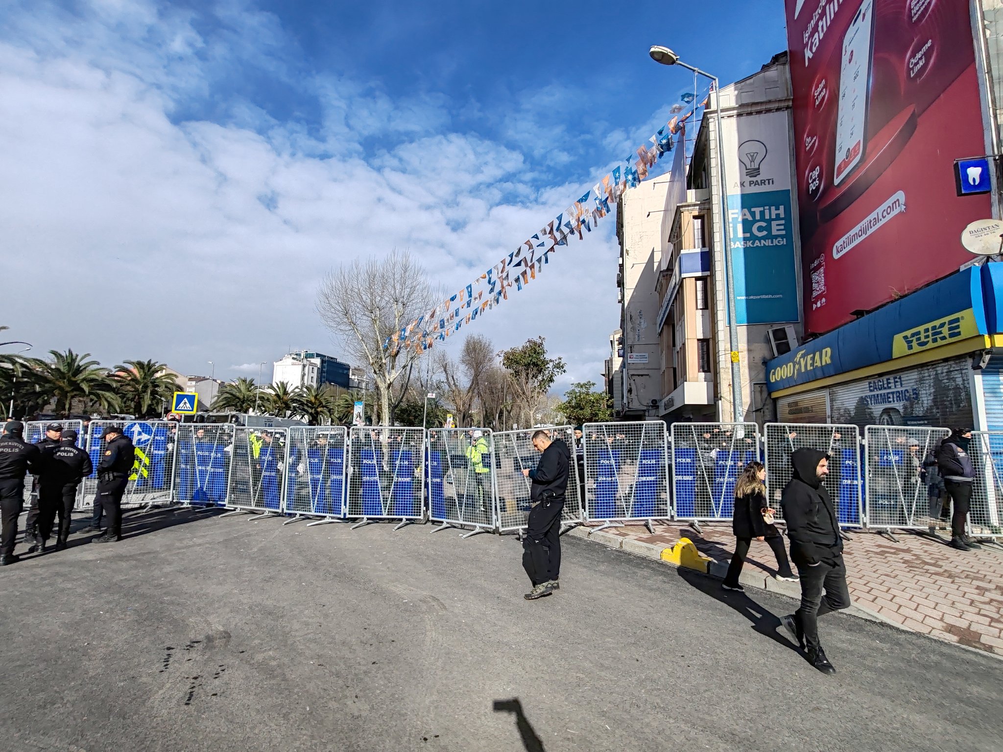 Sabah saatlerinde düzenlenen operasyonda gözaltına alınan ve evi aranan Ekrem İmamoğlu, saat 10.00 sularında Vatan Caddesi’ndeki İstanbul Emniyet Müdürlüğü’ne getirildi. İmamoğlu’nun gözaltına alınmasının ardından Vatan Caddesi’nde bulunan İstanbul Emniyet Müdürlüğü ve çevresi polis tarafından bariyerlerle kapatıldı. Caddeye çıkan çok sayıda sokağa polis bariyerleri konuldu.