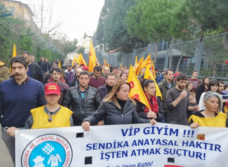 KARTAL- Kocaeli Gebze’de kurulu olan VİP Tekstil fabrikasından sendikalı oldukları için atılan işçilerin direnişi 100. gününü geride bıraktı. Sendikalı olarak işe geri dönmek için mücadelelerini 100 gündür kararlılıkla sürdüren işçilere bugün pek çok fabrikadan işçiler destek ziyaretinde bulundu.