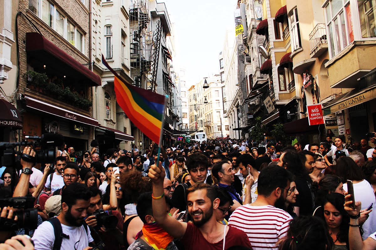 Bizler her yıl olduğu gibi bu yıl da burada, bu sokaklardayız. Kahkahalarımız, bağırışlarımız ve sloganlarımız hala bu sokaklarda yankılanıyor. Binlerce insanın katıldığı ve görünürlüğümüzü kutladığımız yürüyüşlerimizi çok özlüyoruz. Bugün burada varoluşumuzun verdiği onurla ve onurumuzun verdiği güçle bizlere sınırlar çekmeye çalışanlarla alay ediyoruz.