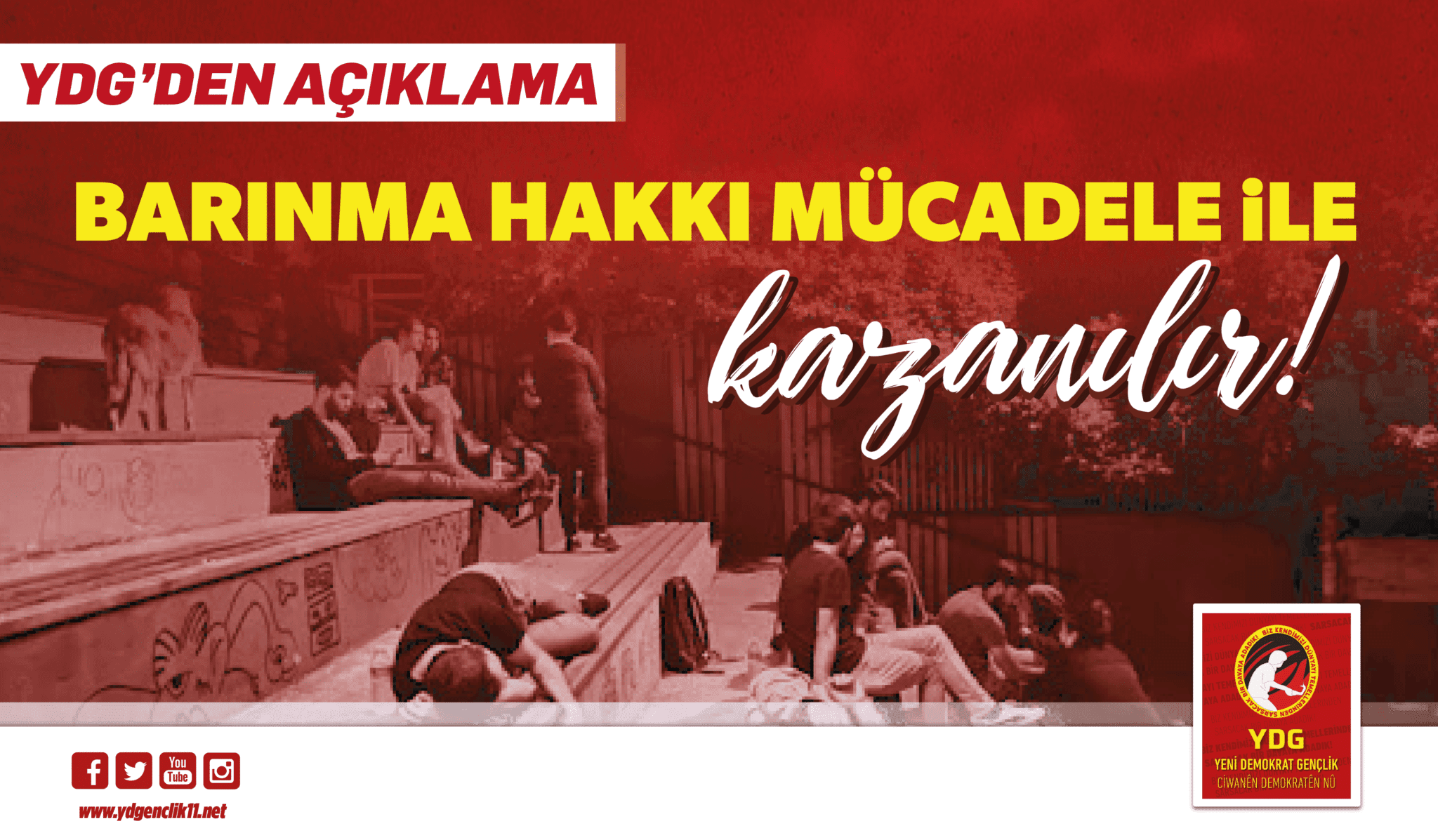 Burjuva-feodal sistemin daha fazla sömürü ve kâr hırsı politikaları halk kitlelerini daha fazla yoksulluğa götürecek ve halk gençliğini geleceksizliğe doğru itmeye devam edecektir. Sefalet düzeni içerisinde ezilmeye, yaşamak zorunda bırakılmaya mahkûm değiliz. En temel hakkımız olan barınma hakkı için geçmişte olduğu gibi bugün de mücadeleyi büyütmeliyiz. “Elinizdekiler ile yetinmeyi bilin” diyen hâkim sınıf temsilcileri elbette şunu iyi bilmektedir ki, sömürü sisteminin bir dişlisi olması için halk gençliğini sürekli dizginlemeye, sorunlar karşısında tepkisiz bırakmaya çalışmaktadır. Fakat elinde olmayanların, “elindekiler ile yetinmesi” çelişkinin kendisidir. Bugün elimizde olan ise ve kurtuluşu getirecek yegâne güç örgütlenmek mücadele etmektir. Özgürlüğümüz ve geleceğimiz için örgütlü mücadeleyi büyütelim! Gelecek ile aramıza kalın duvarlar örenlere karşı tüm halk gençliğini YDG saflarında örgütlenmeye, geleceği kazanma mücadelesine omuz vermeye çağırıyoruz.