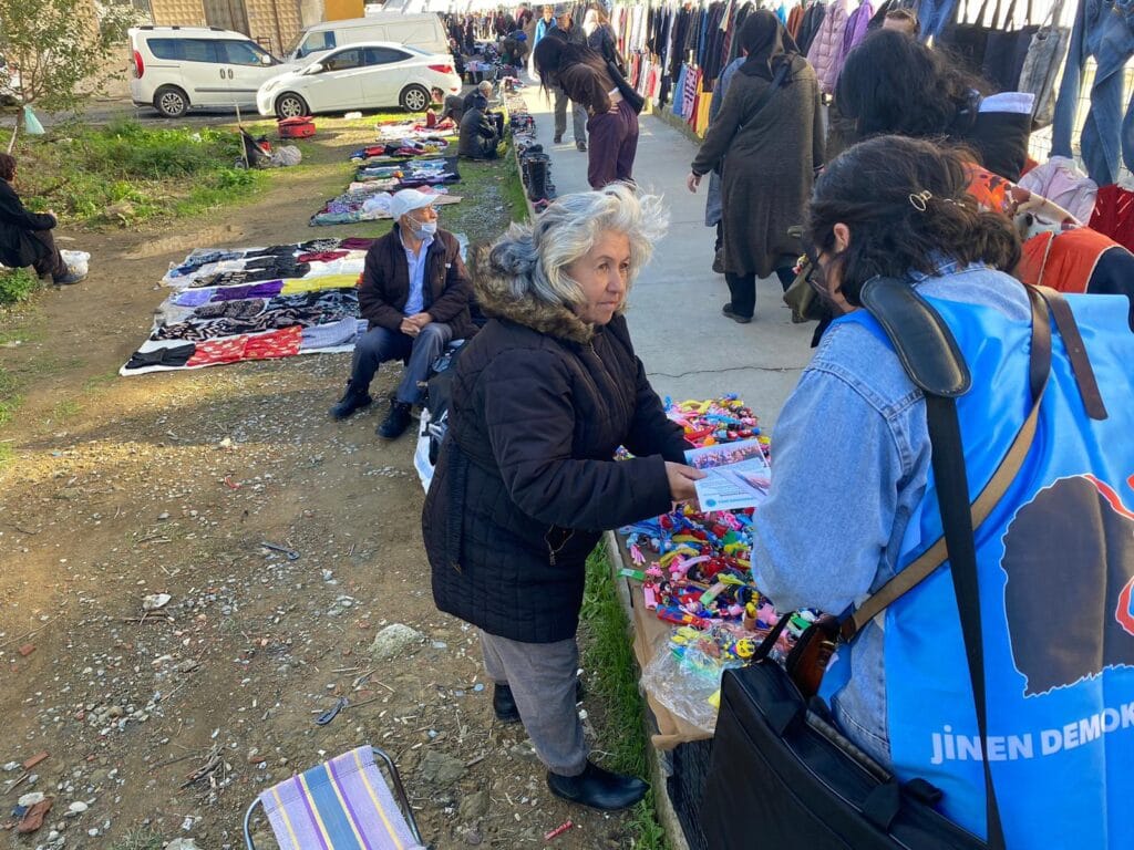 Kadıköy Salı Pazarında ise yüzlerce kadına bildiri ulaştırılırken buradaki kadınlarla da kadına yönelik şiddet, ekonomik kriz üzerine sohbetler edildi.