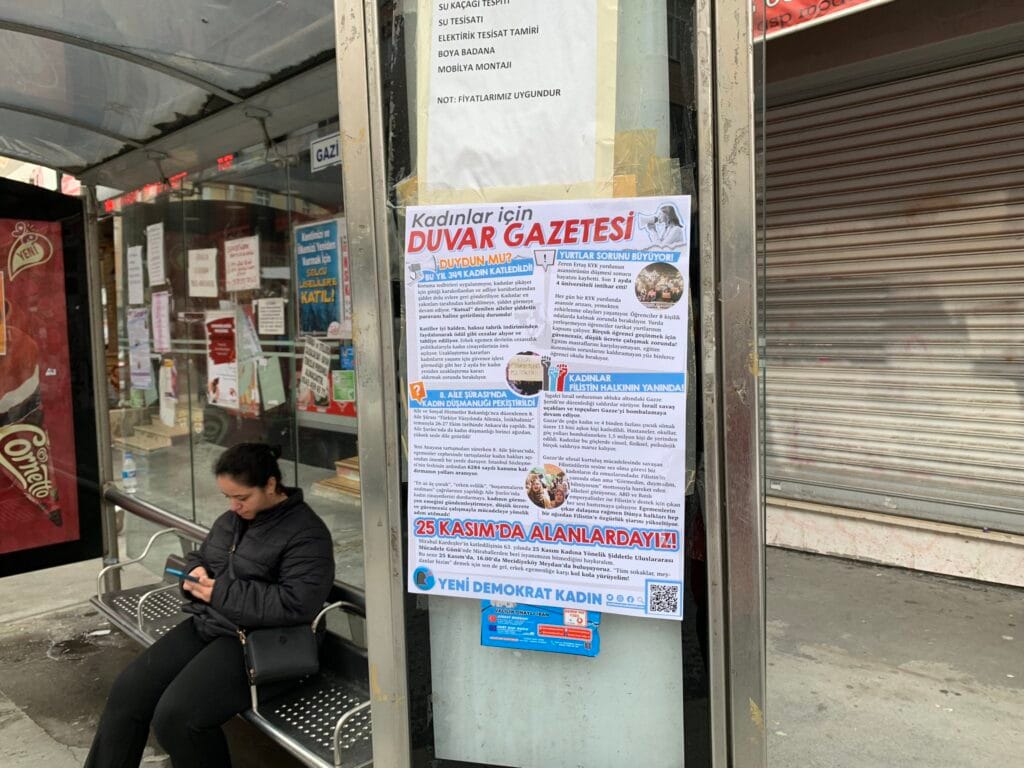 Gazi Mahallesi’nde de çalışmalarını yoğunlaştıran YDK gecekondu bölgesinde, atölyelerde ve pazarda bildiri dağıtımları gerçekleştirirken mahallenin birçok noktasına kadınlar için hazırlanmış duvar gazetesini astı.