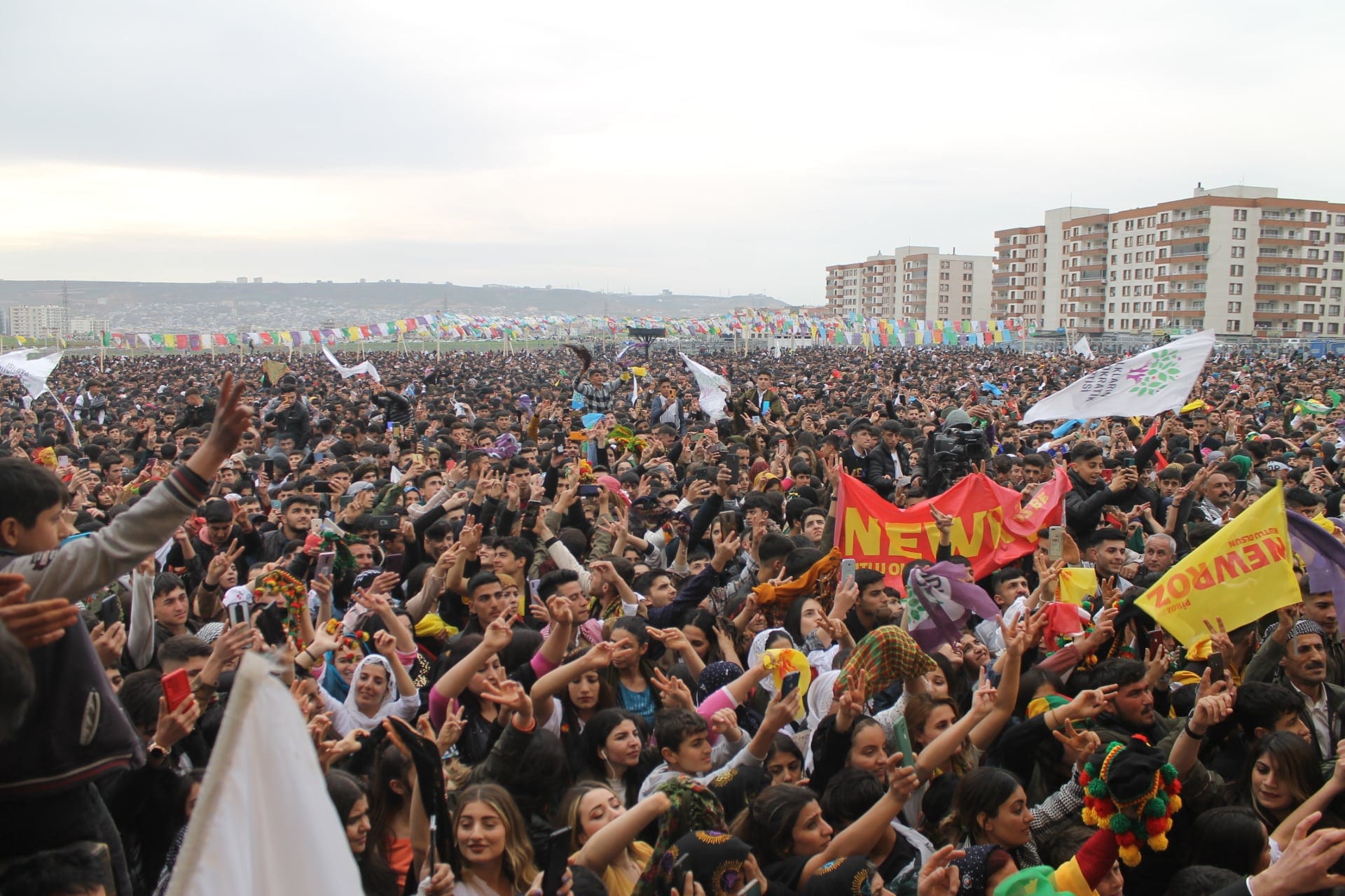 Şırnak’ın Cizre ilçesinde “Dem dema serkeftinê ye” şiarıyla TOKİ Newroz alanında gerçekleştirilen Newroz kutlaması yüz bini aşkın kişi katıldı. Alanda gençlerin ve kadınların coşkusu gün boyu dinmezken sık sık “Bijî Serok Apo” ve “Be Serok Jiyan Nabe” sloganları atıldı.