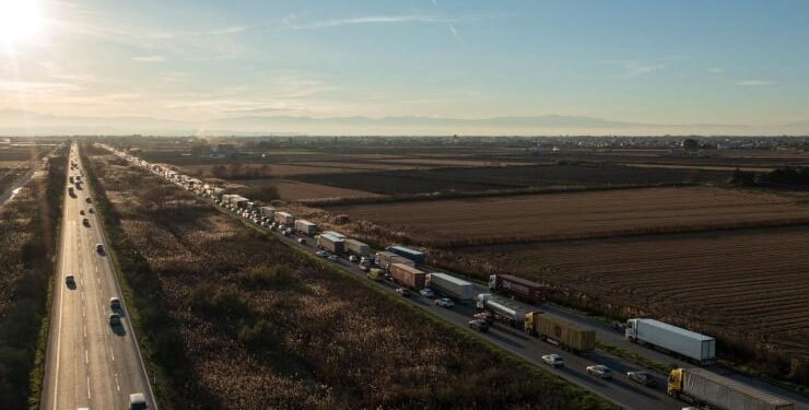 Çiftçiler, Yunanistan’ın başkenti Atina ile Selanik şehri arasındaki otoyolda traktörleriyle eylem yaptı.