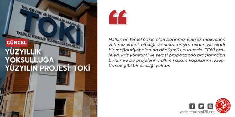 Halk bu sorunlarla boğuşurken iktidar, adeta alay eder gibi Toplu Konut İdaresi Başkanlığı (TOKİ) projelerini çözüm olarak sunuyor. Cumhurbaşkanı Erdoğan bunu “Fahiş kira artışlarını dengelemek için devlet olarak vatandaşımıza kiralık konut vereceğiz.” sözleriyle duyurmuştu. Ancak geçmişten öğrendiğimiz bir şey varsa o da bu söylemin çözüm üretmekten çok krizi derinleştirdiğidir. Zira iktidarın bu noktada temel amacı, gerçek bir sosyal konut politikası inşa etmekten çok, yoksulluğu yönetilebilir kılmak; barınma krizini çözmek yerine ertelenebilir ya da idare edilebilir bir sorun halinde tutmaktır.