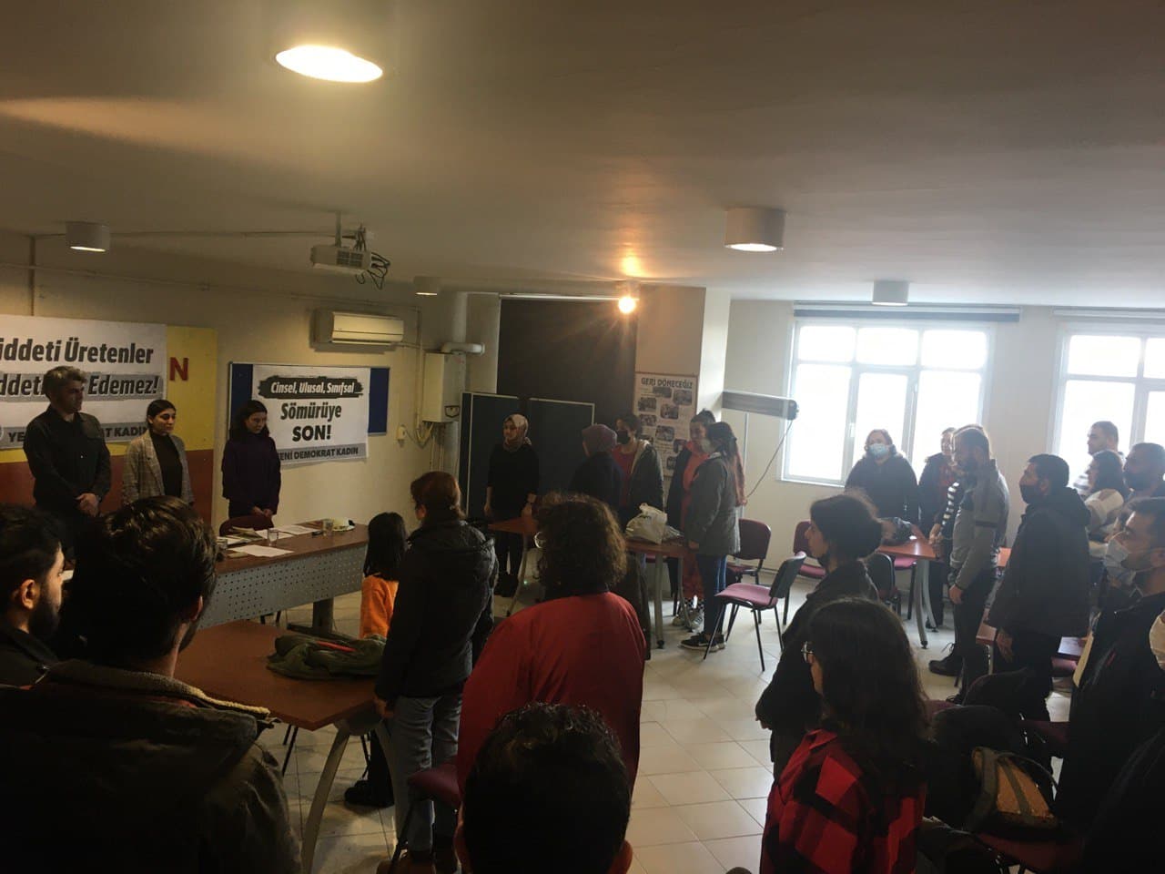 Atölye hakkında yapılan konuşmada, “Hayatımızda giderek derinleşen krizin, yoksulluğun, işsizliğin, emek sömürüsünün ve kadına yönelik her türlü şiddetin iş yerlerinde ve her alanda giderek büyüdüğünü görüyoruz. Her gün çalıştığımız alanlarda, sokakta, evde kısacası dört bir yandan şiddetin tüm biçimleriyle karşı karşıya kalıyoruz. Büyüyen bu sorunlara karşı seyirci kalmamak, bu şiddet biçimlerine karşı farkındalık yaratmak, mücadele etmek ve örgütlenmek adına atölye çalışma yapmaktayız” ifadeleri yer aldı.