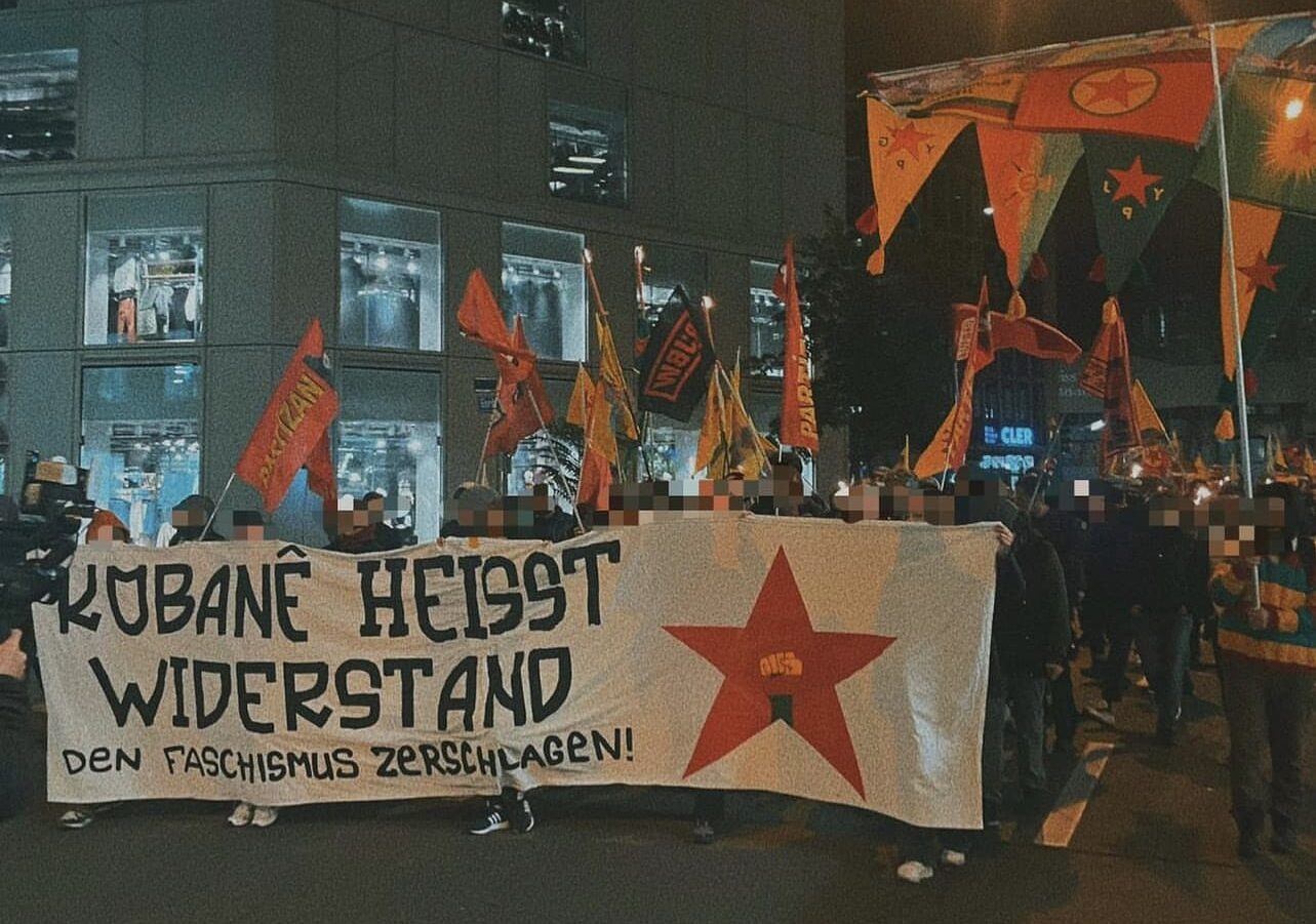 Yürüyüş boyunca kitle sık sık “Biji Berxwedana Gerilla”, “Faşizme Karşı Omuz Omuza” “İşgalciler Kürdistan’dan Dışarı” “Yaşasın Enternasyonel Dayanışma” gibi sloganlar Türkçe, Kürtçe ve Almanca atıldı. Eyleme Partizan, MLKP, MKP ve öncü Partizan katılım sağladı.